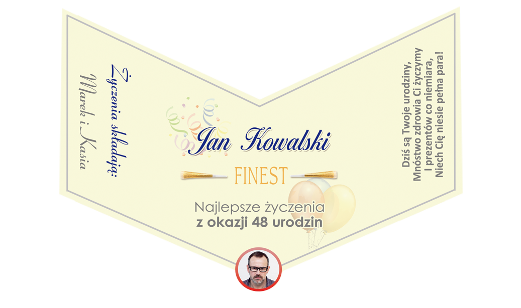 - Zdjęcie solenizanta (w jak najlepszej jakości) - jeżeli nie będzie zdjęcia wykorzystamy pierwszą literę imienia