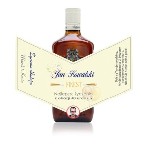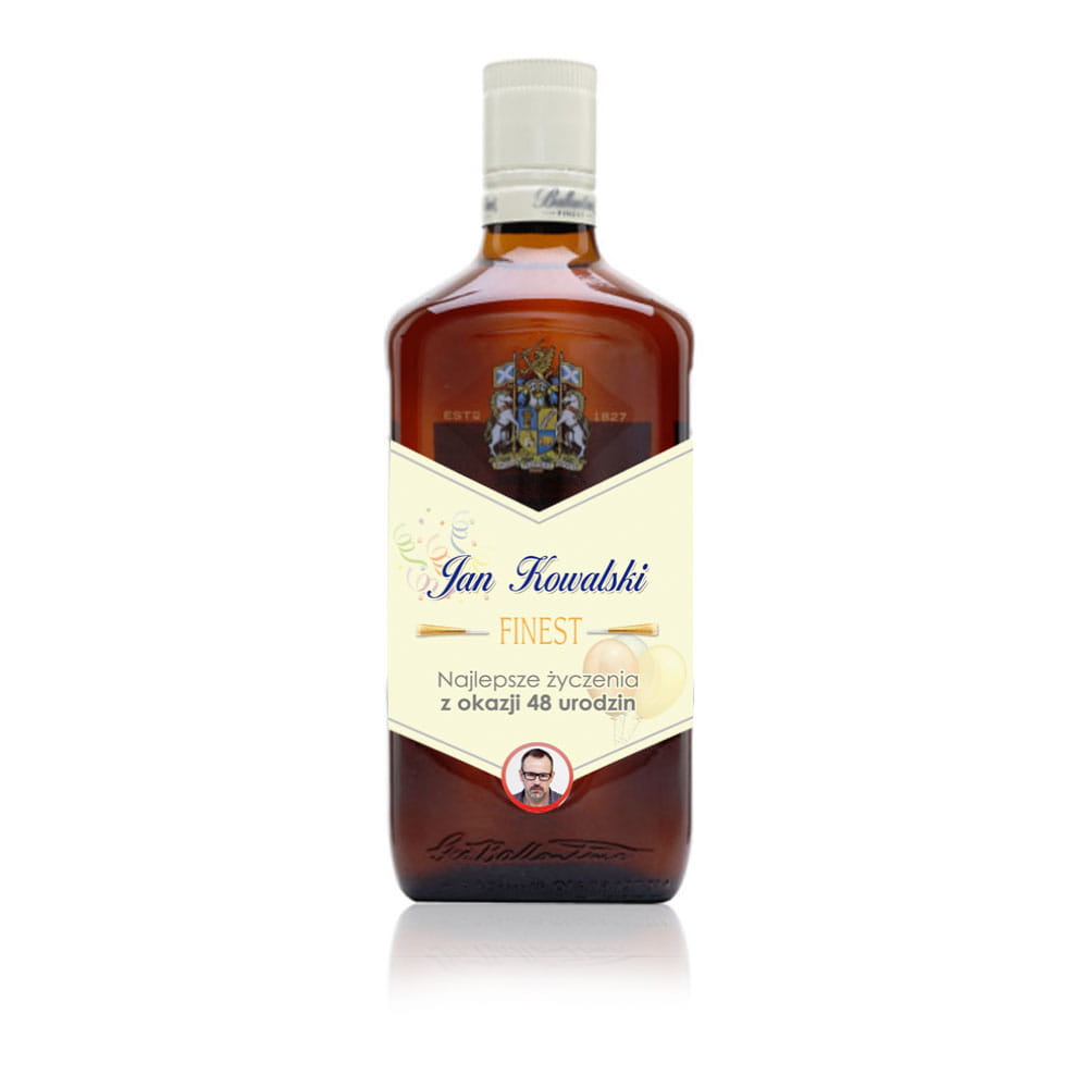 Naklejka na whisky Ballantines ze zdjęciem i z życzeniami, która sprawi, że wręczany alkohol będzie na prawdę wyjątkowy! Jeżeli szukasz oryginalnego prezentu dla wielbiciela wyskokowych trunków, to nie mogłeś lepiej trafić! Prezentowana etykieta wprawi obdarowaną osobę w nie lada zaskoczenie i zachwyt oraz sprawi, że poczuje się na prawdę wyróżniona!