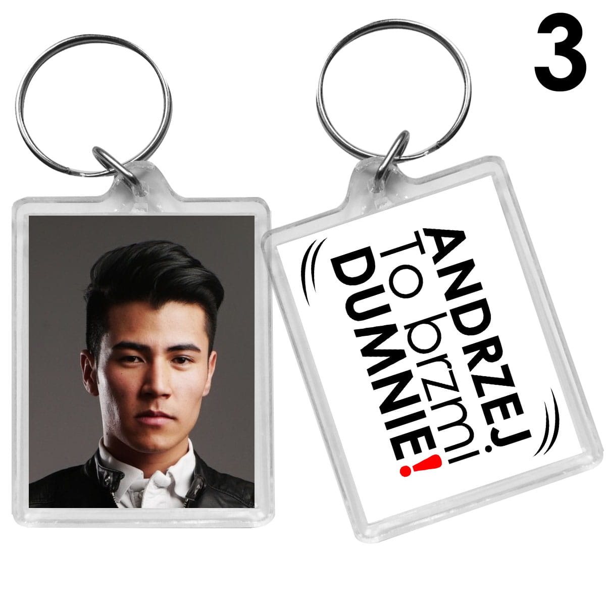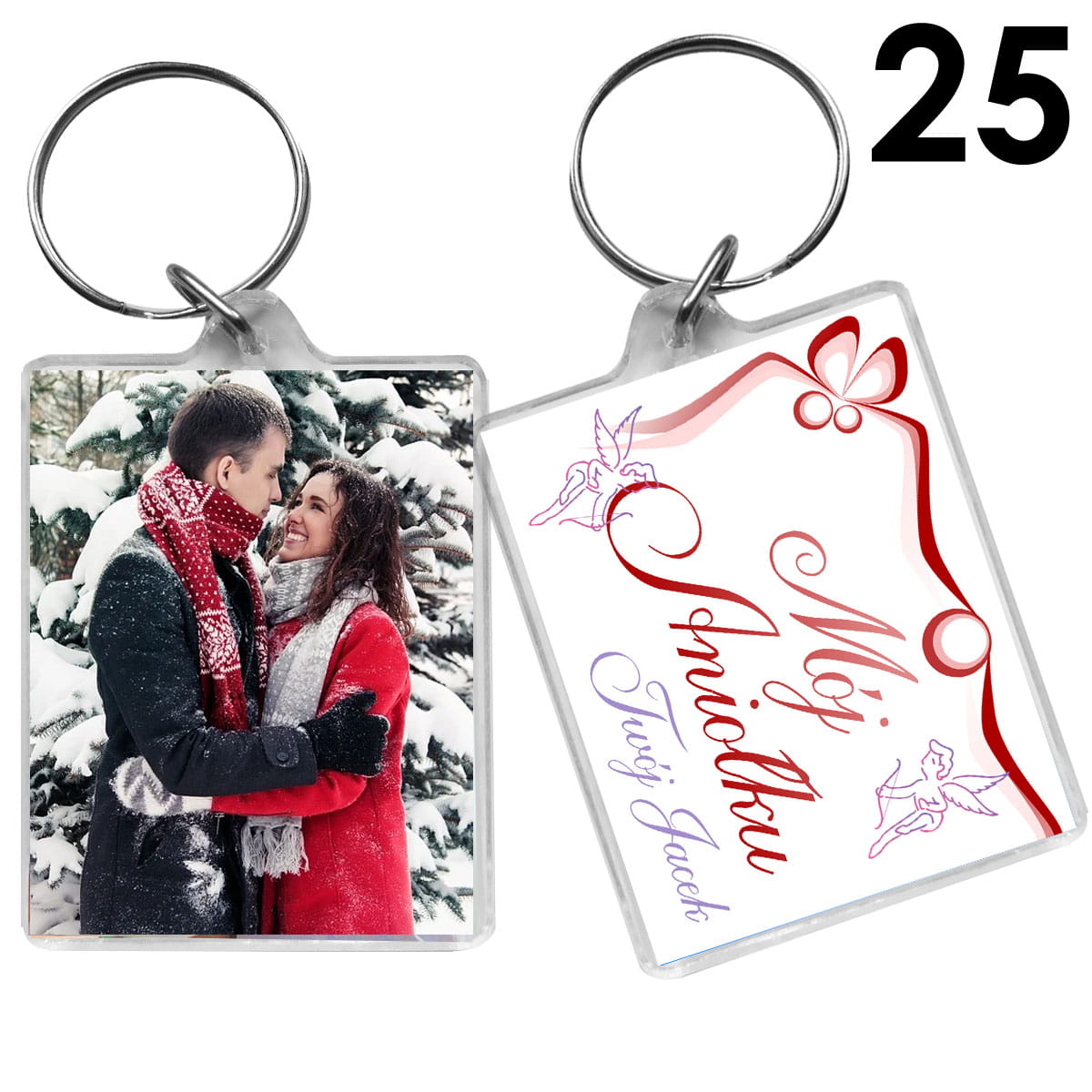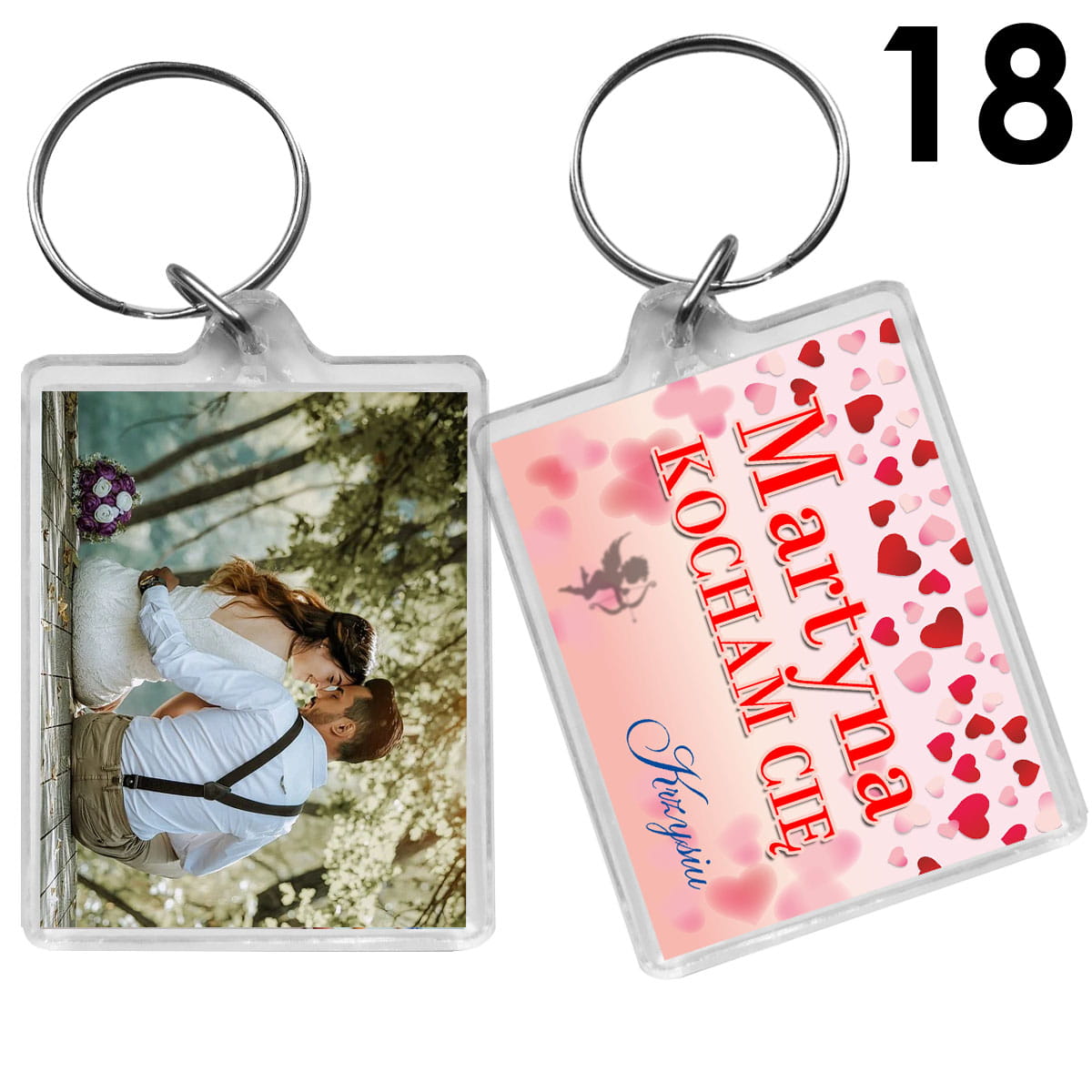 Brelok jest dwustronny; po jednej stronie znajduje się zdjęcie, po drugiej grafika. Możemy także zamieścić zdjęcia po obydwu stronach