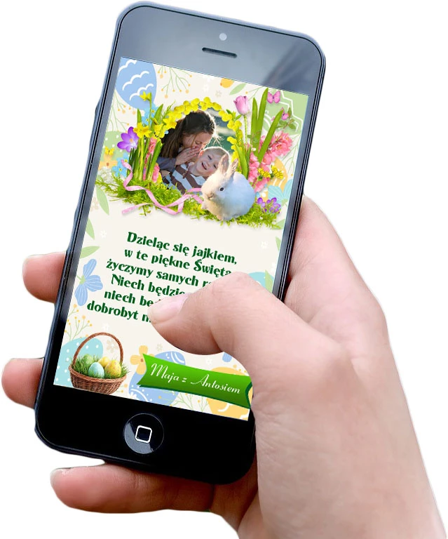 Personalizowana, mobilna, cyfrowa e-kartka z życzeniami na Wielkanoc, podpisem i zdjęciem