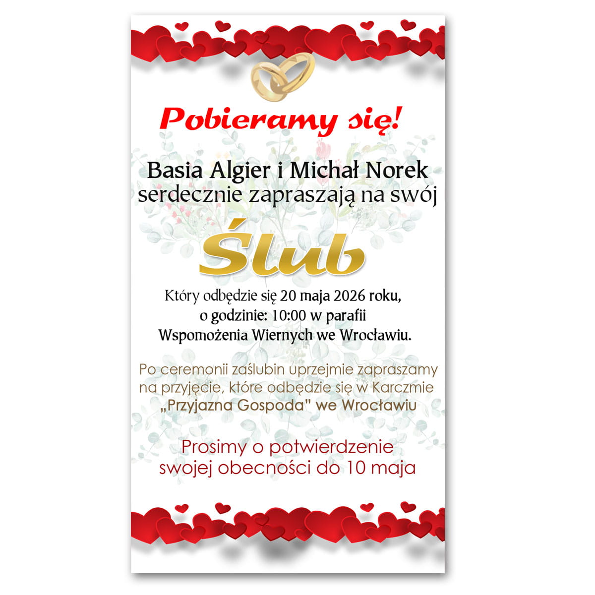 - imiona i nazwiska Państwa młodych