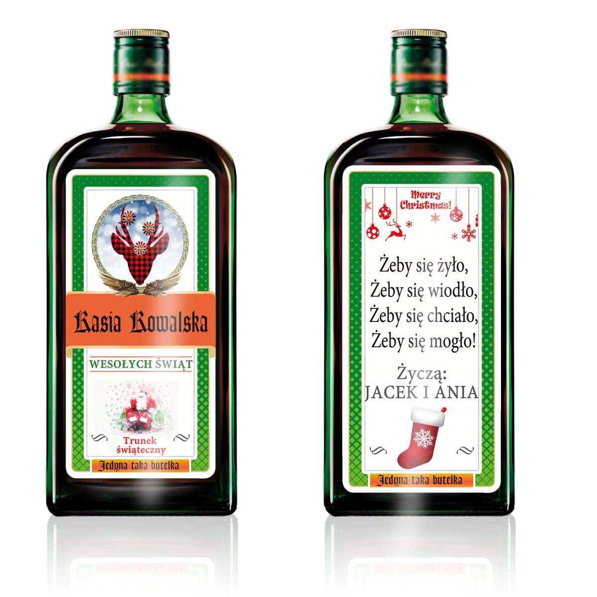 Oryginalny i wyjątkowy prezent świąteczny - personalizowana etykieta na Jagera z imieniem i życzeniami. Nic tak nie ucieszy i nie zaskoczy obdarowanego jak ulubiony trunek ze spersonalizowaną etykietą!