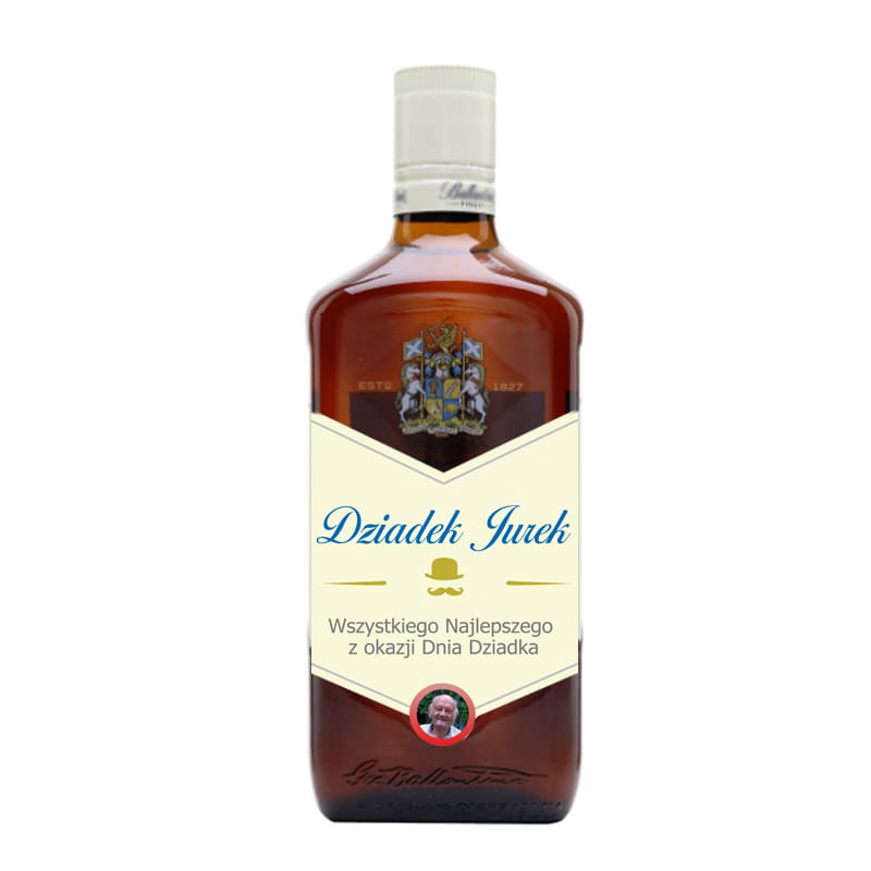 Personalizowana naklejka, która sprawi, że whisky podarowane dziadkowi będzie na prawdę wyjątkowe! Etykieta na Ballantines ze zdjęciem i z życzeniami, to prezent który zaskoczy Twojego dziadka i sprawi, że poczuje się doceniony i wyróżniony!