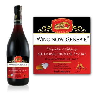 Etykieta personalizowana z okazji zaślubin z imionami Państwa młodych i datą ślubu uczyni wino wyjątkowym napojem miłości. Nic nie sprawi takiej radości i nie zachowa się tak w pamięci Państwa młodych, jak dobry alkohol przygotowany specjalnie w związku z najważniejszym dniem w ich życiu. Dzięki naszej personalizowanej etykiecie, bez wątpienia wręczany alkohol stanie się właśnie takim prezentem! Jeżeli chcesz zaskoczyć parę młodą oryginalnym i niepowtarzalnym prezentem,dając przy tym możliwość delektowania się markowym winem, to nie mogłeś lepiej trafić!